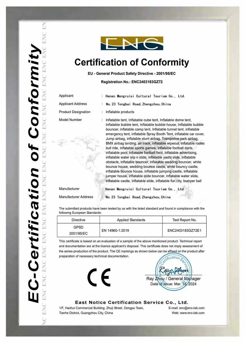 Henan Mengruisi Cultural Tourism With over 20 years of experience in amusement equipment, we are a specialist in inflatable castles. Headquartered in Henan, we serve the global market and provide one-stop "design + production + sales" services for cultural tourism and amusement.